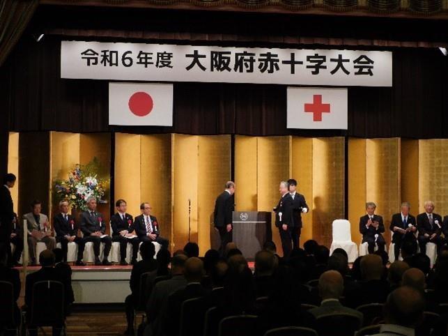Mr. Tatsuya Motomatsu, the Chairman & CEO of KYOSEI Group received the Golden Credit Award under the witness of Deputy Governor of Osaka Prefecture: Mr. Shoji Hamada and the Vice President of Japanese Red Cross: Mr. Yoshiharu Otsuka.